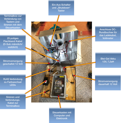 Die OCF-Flag 2.0 ist eine Kombination aus Bedienelementen, Displays, Sirenen, einer Steuer-Elektronik, einem Computer und einer Betriebssoftware.