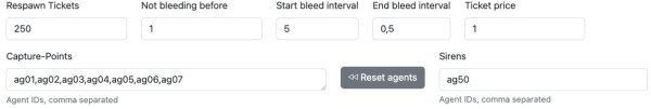 - Not bleeding before ist die minimale Anzahl von Flaggen, die ein Team halten muss, damit der Ticketverlust beginnt. In der Regel steht hier eine 1, dadurch beginnt der Mechanismus bereits ab der ersten Flagge. Ihr könnt aber auch sagen, dass ein Team mindestens 3 Flaggen halten muss usw.